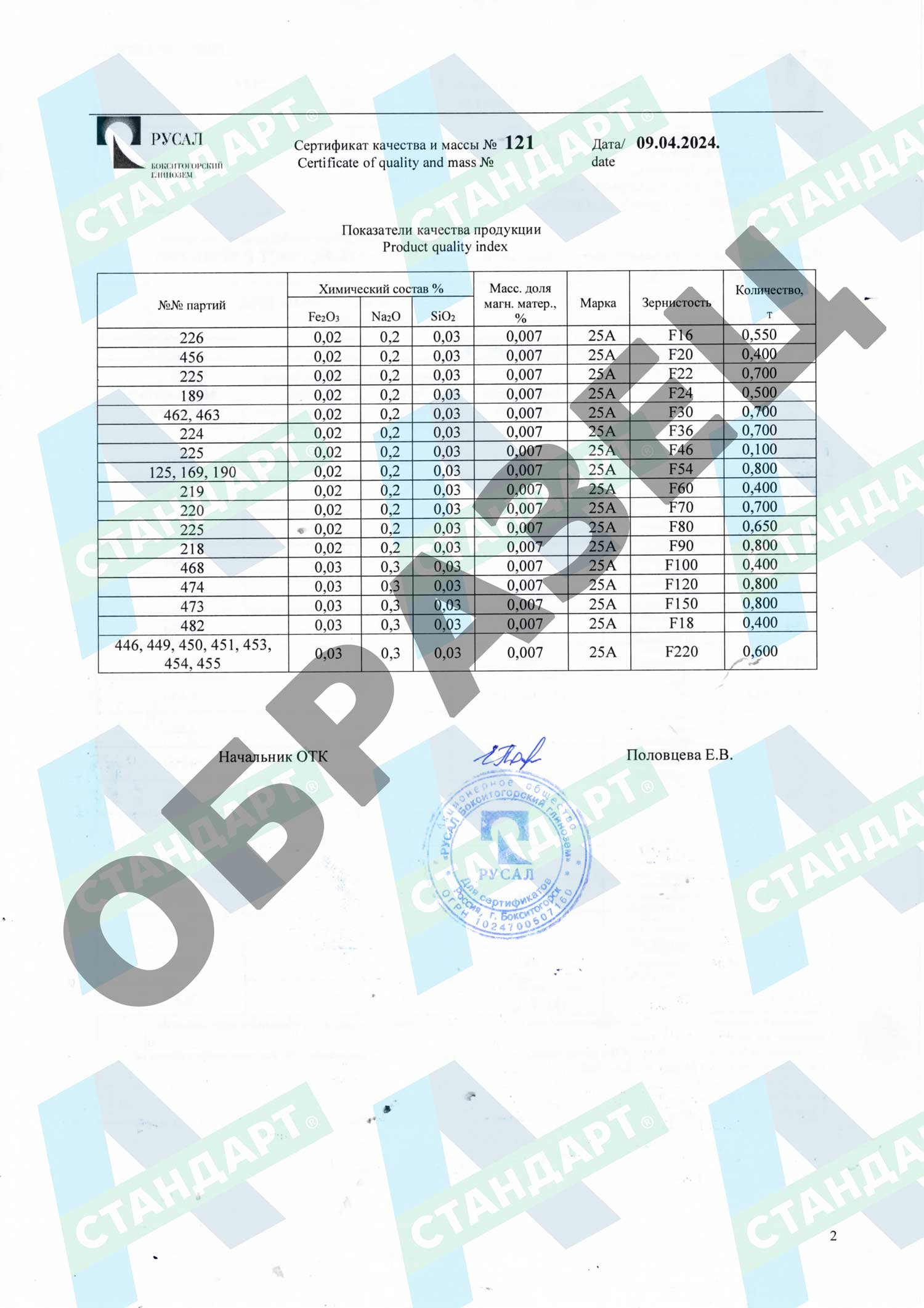 Каждая поставка сопровождается паспортом с данными о зерновом составе и твердости.
