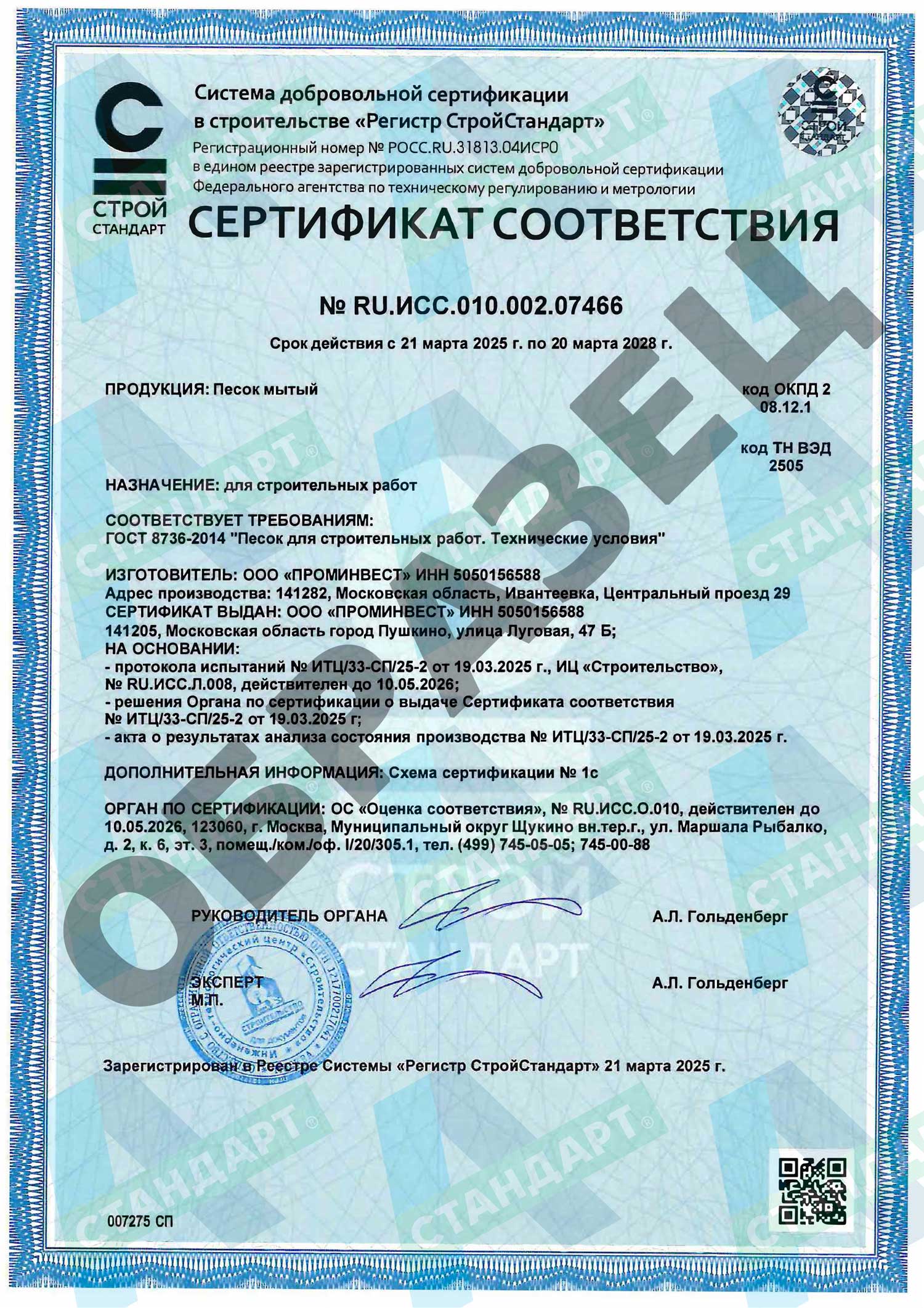 Запросите паспорт ГОСТ 8736-2014.