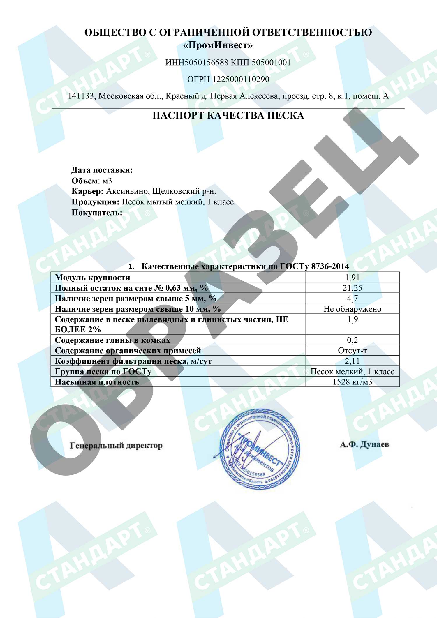 Запросите паспорт ГОСТ 8736-2014.