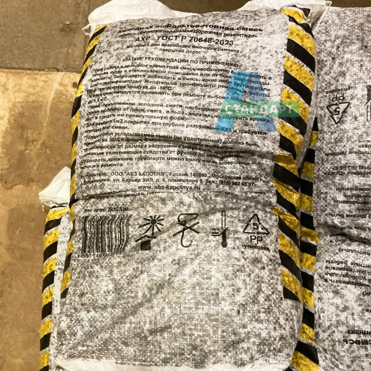 Готовы предложить лучшую цену холодного асфальта за мешок 25 кг в регионе при оптовом заказе. Всегда выгодно купить мешок холодного асфальта, цена которого оптимальна для бюджетов любого уровня, особенно с доставкой в день заказа (оплаты).
